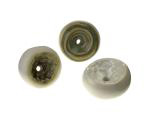 1 Gemstone Pendants Speckled Green Donut Disc Round Pendant 35mm. Semi precious polished round stone disc pendants with a central hole for knotting onto a cord or thong to create necklaces. Grey brown natural stone pendants with speckles of pale green like lichen on stone.