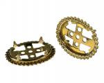 1 Vintage Cabochon Settings Gold Decorative Oval Pendant Frame Prong Settings 32mm x 25mm. Gold tone vintage settings with four 3mm prongs to secure a 24mm by 18mm cabochon, stone, or cameo. The decorative edging is a repeating pattern of round domes.