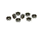 Metal rondelle beads 8.5mm in diameter by 3mm in hole to hole length. The stringing hole runs through the centre of each bronze bead.