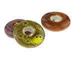 10 Porcelain Beads Assorted Colour Glazes Doughnut Ring Ceramic Mixed Pendant Bead Selection 27mm x 8mm. Glazed ceramic beads in a range of colour tones from pale pink through ochre to grey, and in a variety of finishes from plain to speckled. The colours across these mixed beads varies between selections.