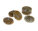 5 Czech Glass Beads Golden Travertine Rippled Pressed Flat Lustre Square Bead 16mm. Flat travertine finish squares of chalk white opaque glass coated with a golden brown glaze. The finish has a hint of metallic gold and lilac.