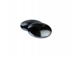 Vintage acrylic beads with a flat face and a domed face rising to a height of 3.5mm. They are 22mm in diameter with a 1mm central hole.